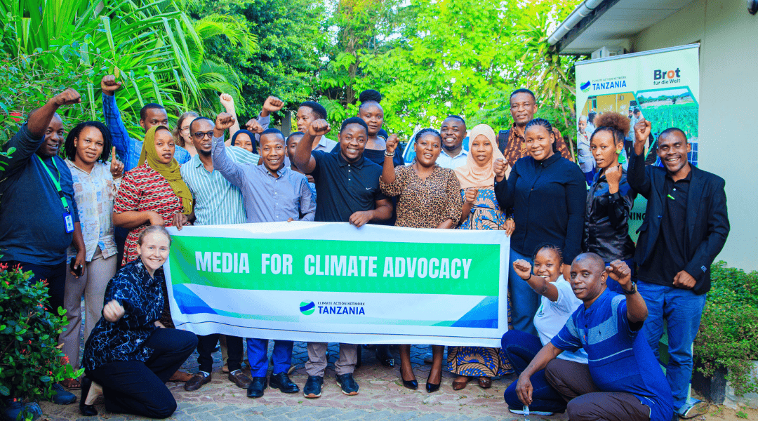 A group photo with one group of the CAN Tanzania renewable energy coalition during a session to develop advocacy materials for clean and affordable energy